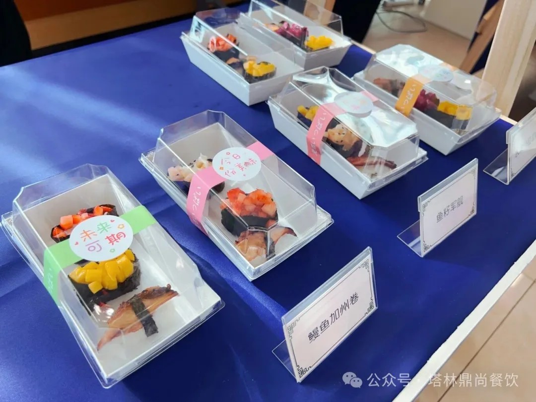 西点区域则充满了浪漫与甜蜜,色彩斑斓的蛋糕、酥脆可口的饼干,让人仿佛置身于梦幻的甜品世界。而寿司餐桌前,是在师傅的巧手下用新鲜食材变成的一个个造型精美的寿司,令人垂涎欲滴。